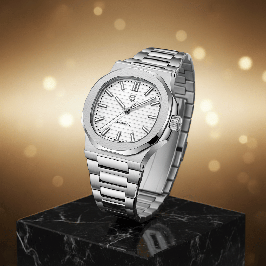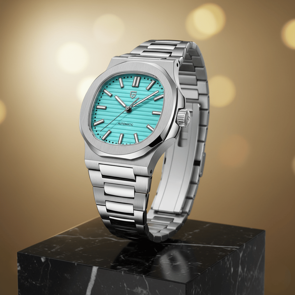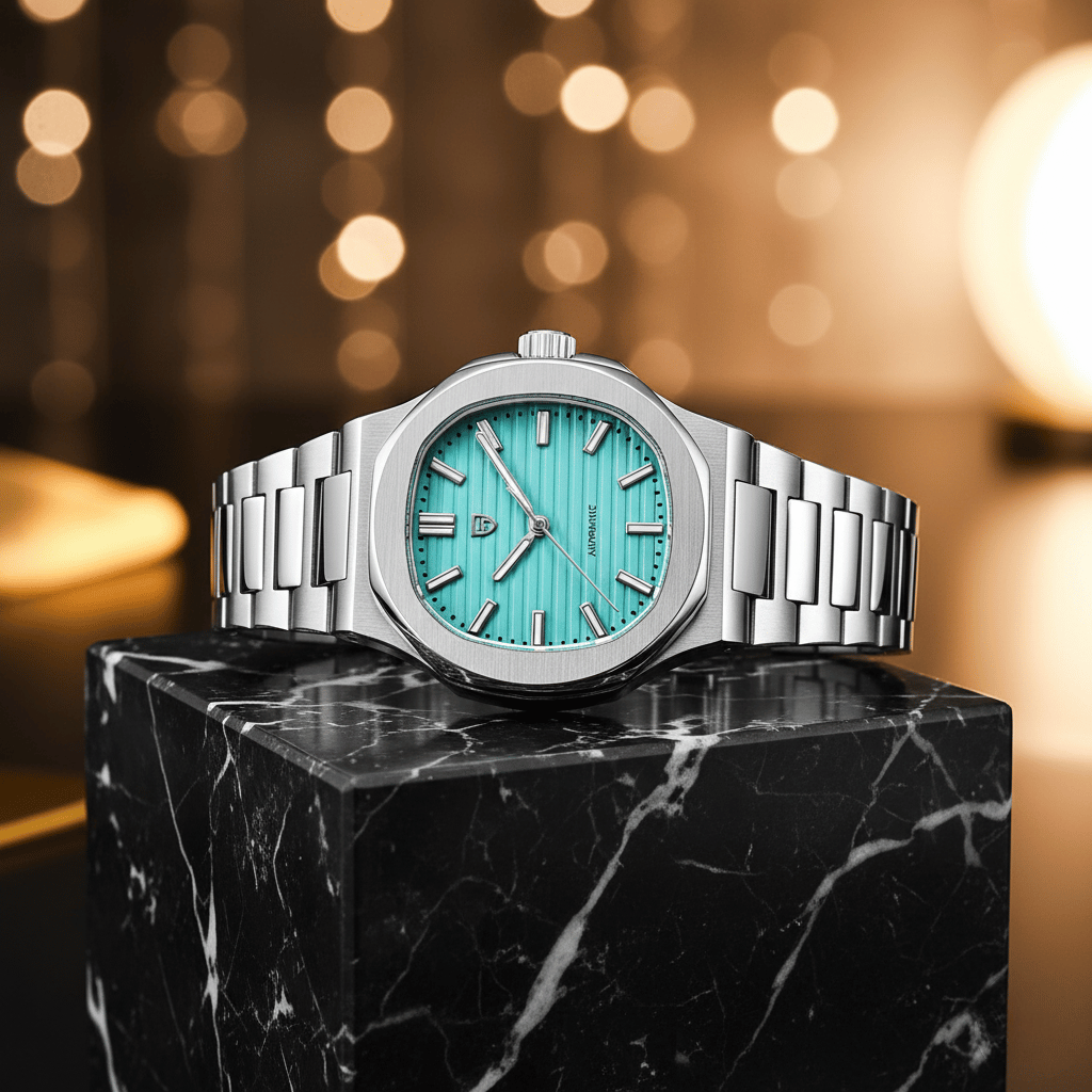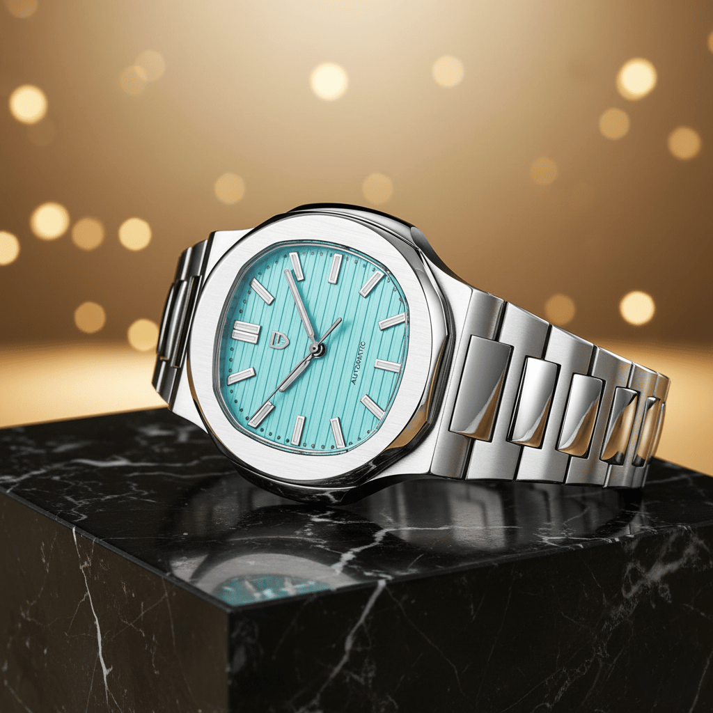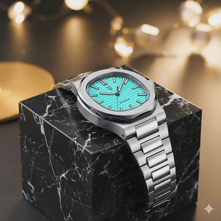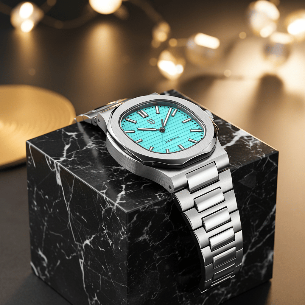 Conçue pour les hommes qui exigent l’excellence, cette montre automatique associe la robustesse d’un acier 316L poli et brossé à la sophistication d’un cadran texturé disponible en plusieurs finitions raffinées : bleu royal, argent glacé ou turquoise